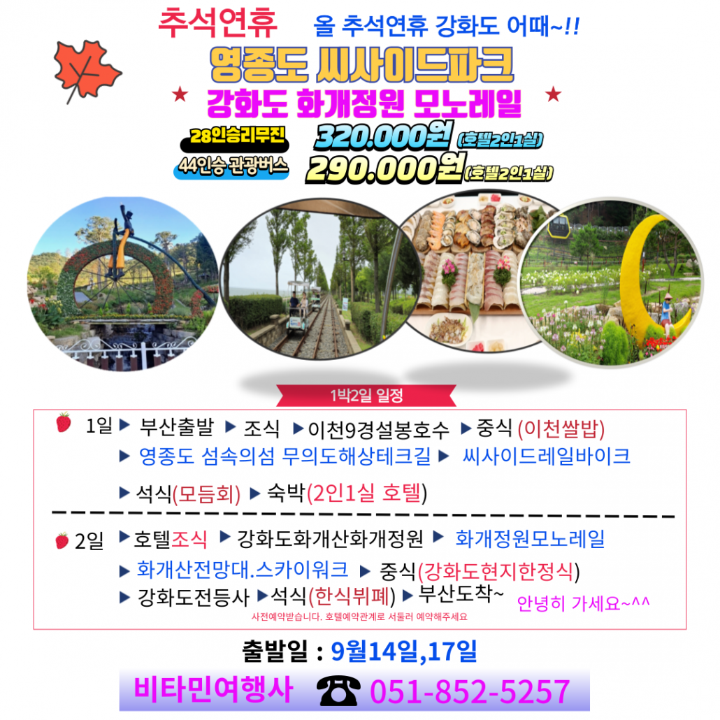 강화도 화개정원 모노레일 1박2일 /영종도 씨사이드레일바이크~
